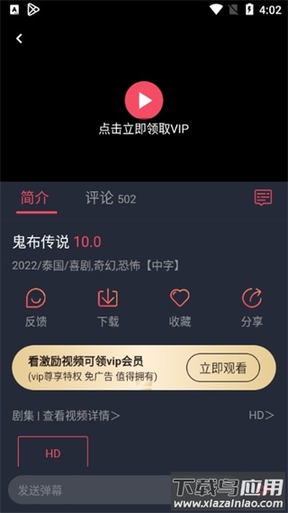 5、观看时可使用弹幕、下载、收藏及分享等多种功能。
