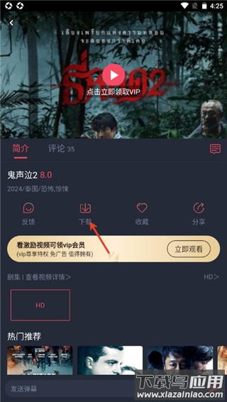 2、进入播放页面,点击下载功能按钮;