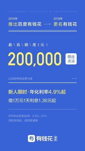 2、费用清晰且还款方式灵活:年化利率从4.9%起,提供多种还款渠道供用户选择。