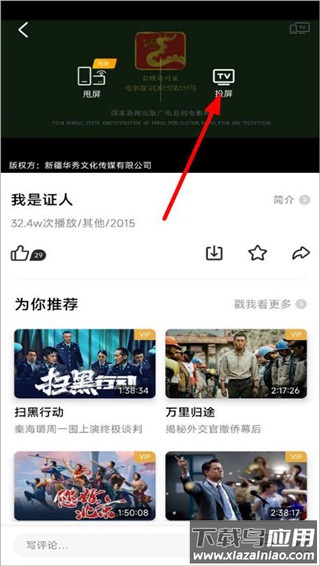2、找到视频后进入播放页面,点击右上角的电视图标。