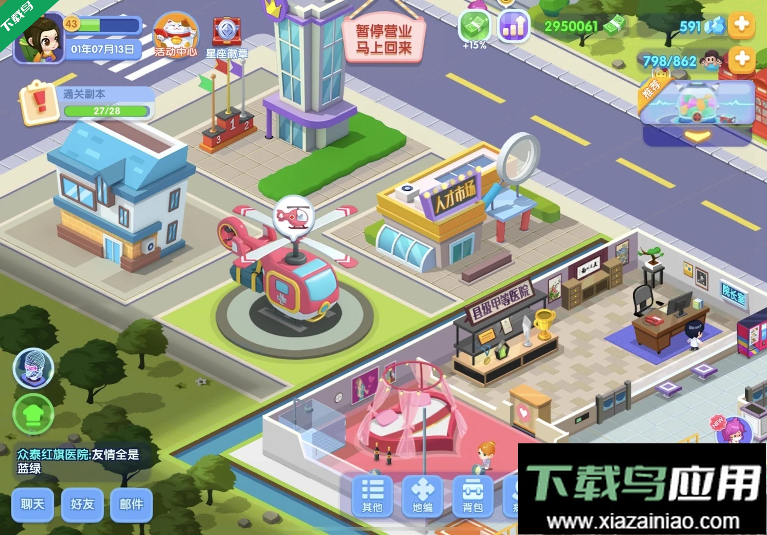 萌趣医院是一款卡通风格的模拟经营手游,玩家将扮演医院院长,亲手规划科室布局,诊断各种荒诞病症,体验经营医院的完整乐趣。游戏结合自由建造与创意玩法,随机事件与社交互动并存,让你在应对离奇医疗挑战的同时,能与好友协作,共同打造独一无二的医疗天地。