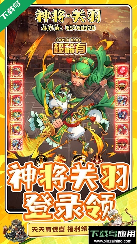 技能效果华丽,经典武将重现:每位武将都拥有鲜明的个性、炫酷的造型与独特的登场方式,游戏中没有绝对弱势的角色,通过培养与装备的合理搭配,每名武将都能展现其独特价值。