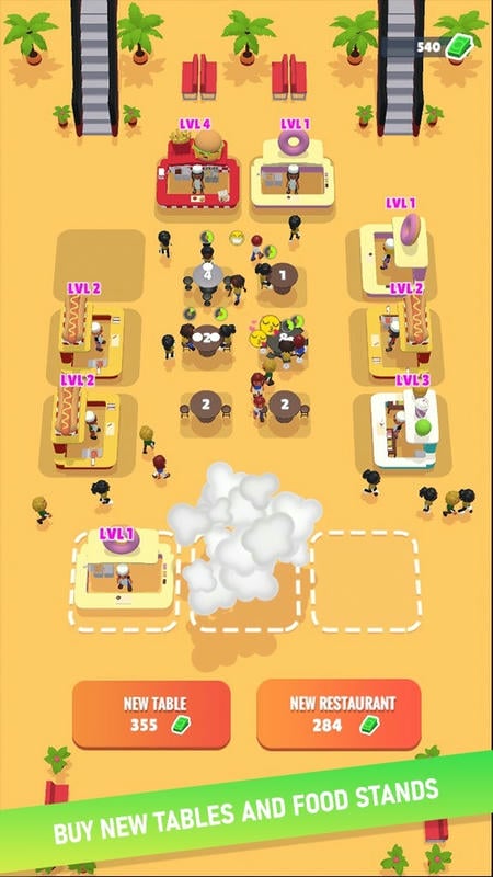 2. 通过在美食广场内建立各式各样的美食摊位,你可以获得大量收益,并且还能进一步扩建广场的地盘。