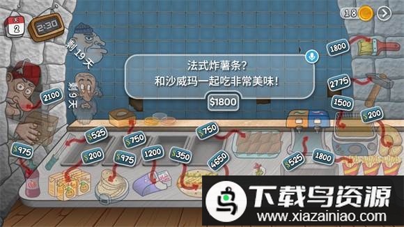 4、如果已解锁法式炸薯条项目,则可以单独售卖薯条。操作步骤类似,点击即可将薯条装入专用餐盒。后续升级还能实现薯条自动装盒功能。