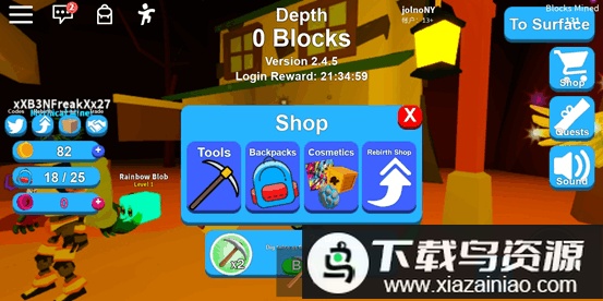 积累一定金币后,可以找到带有购买标识的商人进行购物,进入黄色圆圈会打开商店界面,商店分为四个类别:工具、背包、装扮以及重生商店,前期建议优先升级工具和背包,减少往返地面的次数,有效提升采矿效率,拥有高级工具后,可以深入更底层挖掘珍贵矿物,运气好还能找到金箱或钻石,不过这些高级资源需要相应级别的工具才能开采。