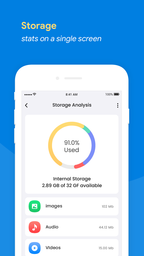 4、点击主屏幕的“存储分析”按钮,即可轻松清理文件以释放存储容量。