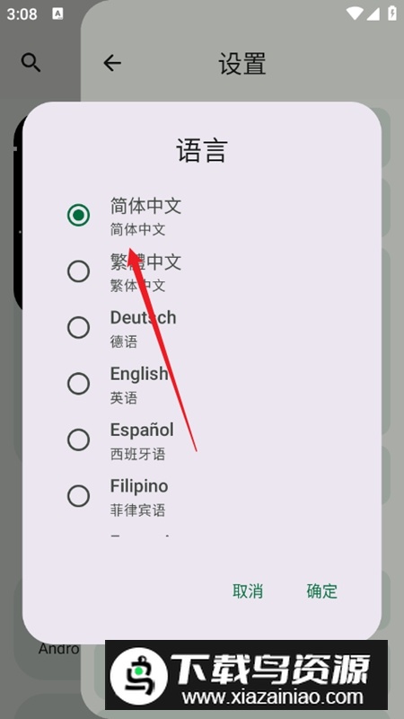 3.在语言设置列表里,找到并选择简体中文,界面语言就会立即切换。