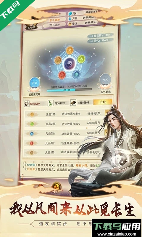 游戏以离线收益为核心设计;完成初期筑基后,角色无论在线与否均会自动积累修为,境界越高收益越快;这种机制让玩家无需持续操作也能稳步成长,感受天道酬勤的修真意境。