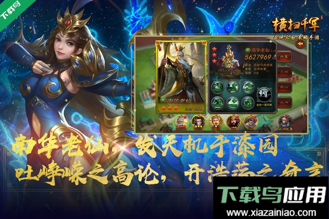 横扫千军是一款全新的三国策略游戏,它回归经典策略玩法,运用次时代技术真实还原千军万马的战场景象,展现三国名将呼风唤雨、横扫千军的英雄气概。在游戏里,你会遇见三国时代所有璀璨的将星与文臣,比如一身是胆的赵云、巧借东风的诸葛亮、古之恶来典韦等。凭借豪华的武将谋士阵容,加上主公的智慧,定能在这乱世风云中开创一番霸业,笑傲天下。