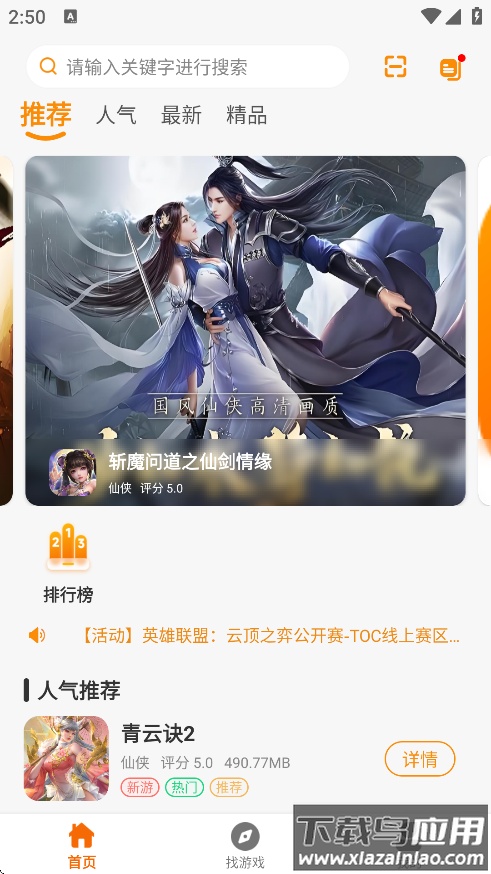 扬起游app官方下载集合了多种热门游戏资源,从经典传奇到奇幻仙侠,从深度策略到趣味卡牌,各类选择都能在这里找到。软件内划分清晰,还带有快速搜索功能,新游戏上架也会及时通知,这个游戏盒子实用方便,感兴趣的朋友可以下载试试。