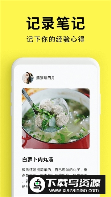 灵感记录:跟做菜谱时可添加文字笔记或上传图片,保存自己的下厨点滴。