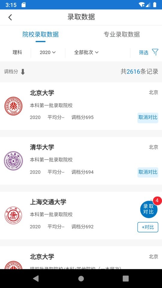 1、根据所选专业、高考成绩,筛选出匹配度较高、适合报考的院校范围。