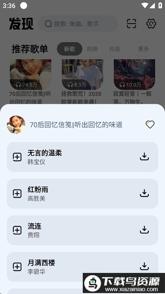 3、丰富的歌单资源:内置抖音热歌、新歌热榜等精选列表,方便发现好音乐,也能通过搜索获取任意歌曲。