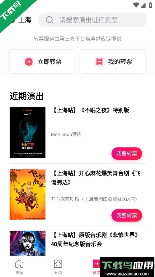2、点击底部分类标签能够查看全部演出类型;
