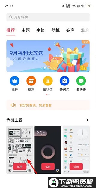 1、打开主题商店,找到想要试用的主题并点击进入。