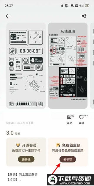 2、点击页面下方“免费领主题”区域的【去领取】按钮。