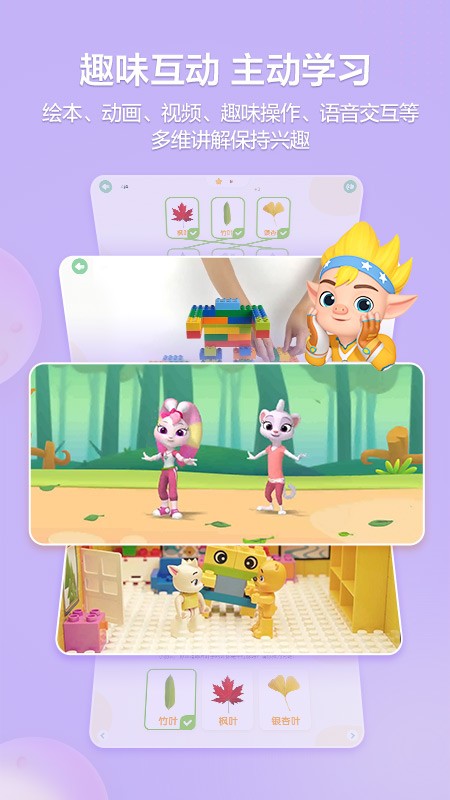 2.互动有趣激发主动——融合绘本、动画、视频、趣味操作与语音交互等多种形式,持续维持孩子的学习热情与参与乐趣;