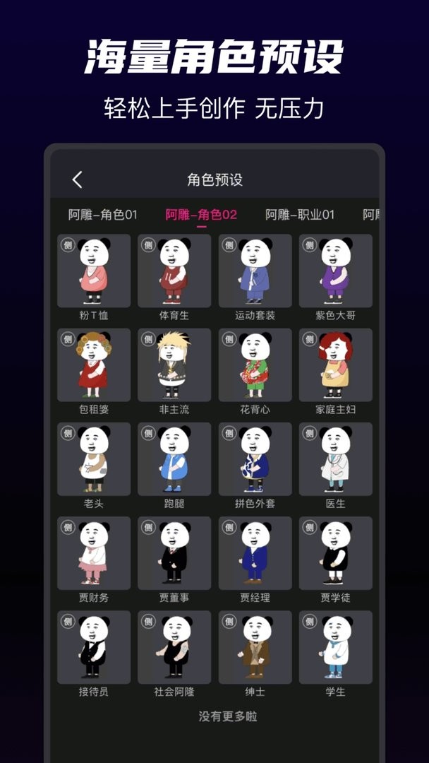 用户可以浏览大量热门素材,自由设计各类角色;