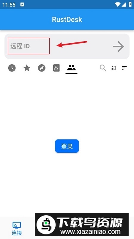 接着,在用作控制端的手机上打开RustDesk,输入刚才记下的ID与密码,点击连接按钮发起远程请求。