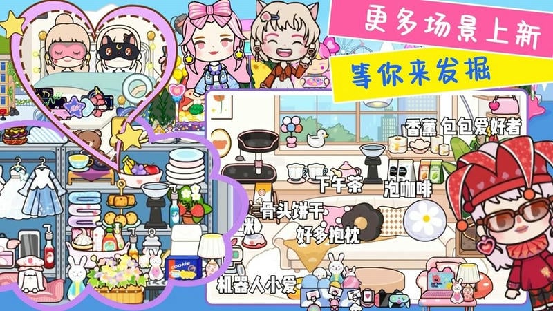 游戏将持续更新,不断推出全新地点与服装;你可以完全自定义衣物、发型与特色妆容,创造个人专属世界。这里没有固定规则,只有高度自由与无限想象。