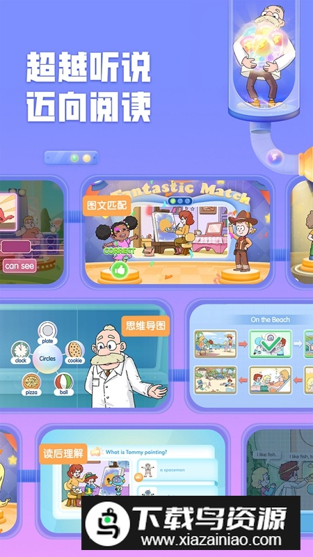 1.趣味互动:融入大量动画、游戏与交互练习,让学习过程充满乐趣,持续激发孩子的主动探索欲。 2.个性化学习:依据孩子的年龄与当前水平智能匹配内容与难度,确保每位学习者都能在适合的节奏中进步。 3.丰富资源:拥有海量词汇库、分级故事、听力材料等资源,全面支持英语各项能力的同步发展。