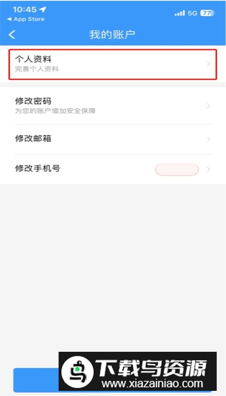 2.点击个人头像进入“个人资料”页面;