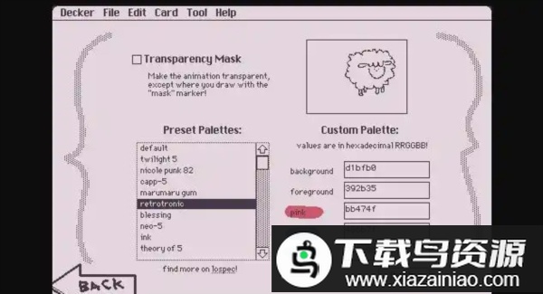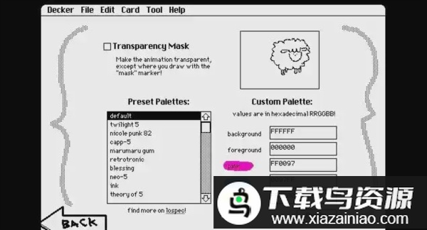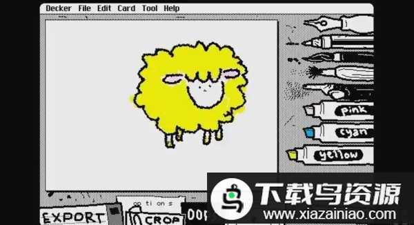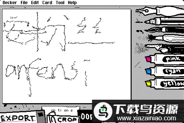 这是一个使用Decker构建的、充满活力的抖动绘画程序,其风格与ShakeArt和KidPix有相似之处。操作流程简单直观:选取合适的工具进行涂鸦创作,随后对画布进行裁剪调整,最终可以将作品保存为动态GIF图片。