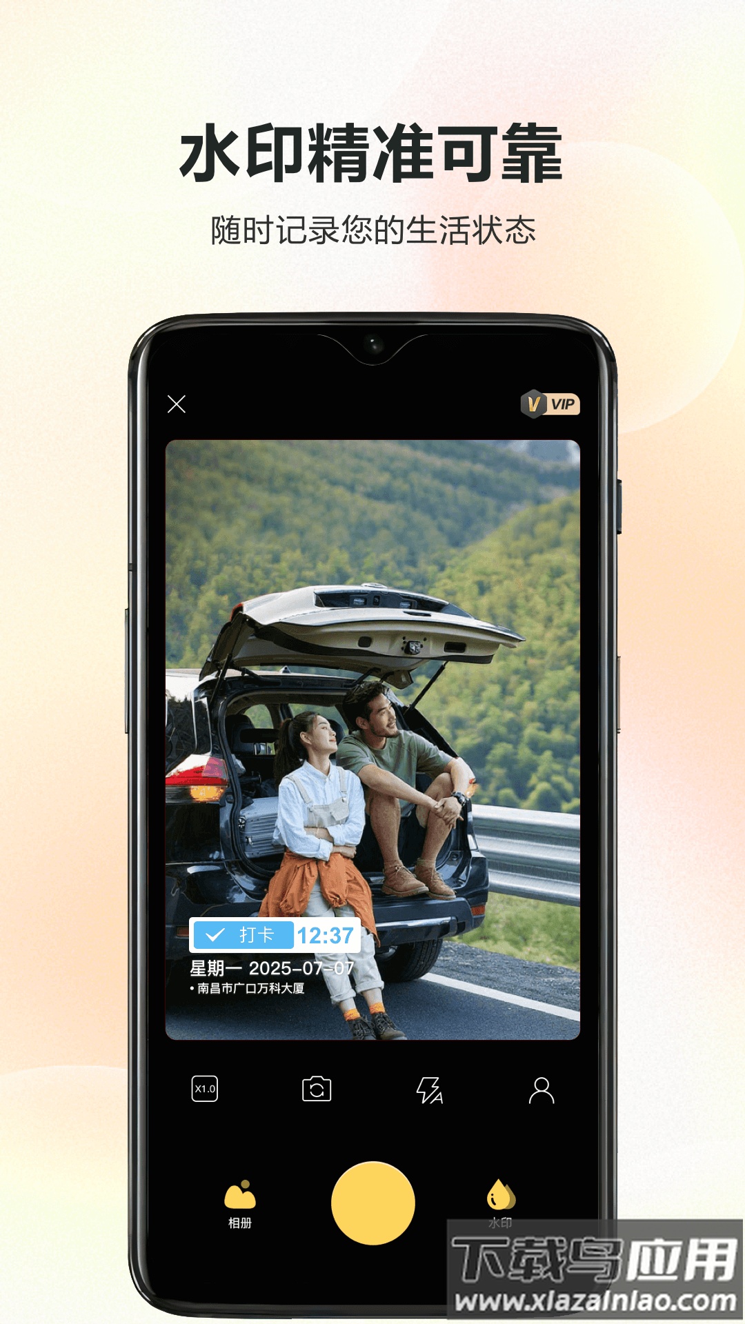迅拍水印打卡相机主要服务于工作考勤场景。它支持在照片上添加包含定位、时间戳和工作内容描述等多种水印信息,也能用于旅途中的瞬间捕捉,让每一张图片都带有具体的场景说明。
