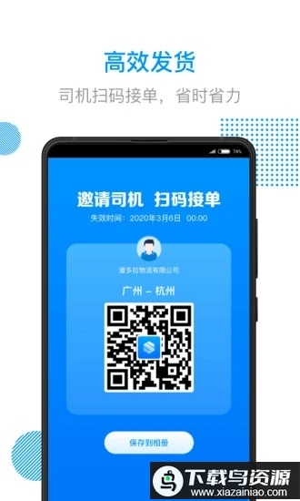 这款应用帮助货主实现高效发货,只需在手机上操作,便能随时随地下单。若已有合作司机,可通过扫码功能直接邀请,实现面对面快速接单;个人专属二维码可保存至本地,方便随时调取使用。