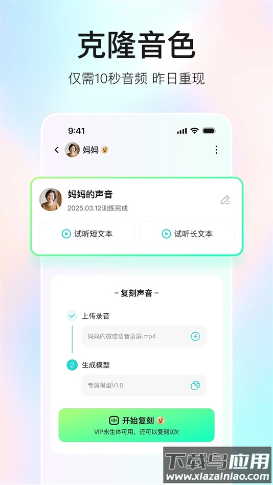 通过深度学习与语音合成技术,对上传的亲人音频进行学习,生成定制化的声音模型。让记忆中那份独特的声音,重新在耳边清晰响起。