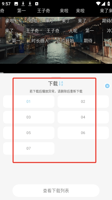 之后会弹出该剧集的下载资源列表,可选择线路与具体剧集,然后开始下载。