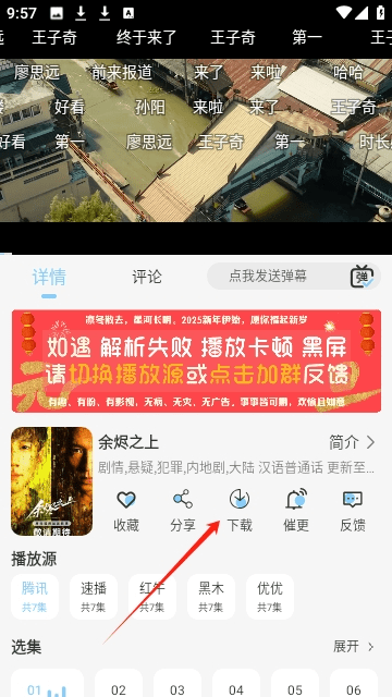 同时,播放页面中间菜单栏的红框区域是下载按钮,用户可以点击它。