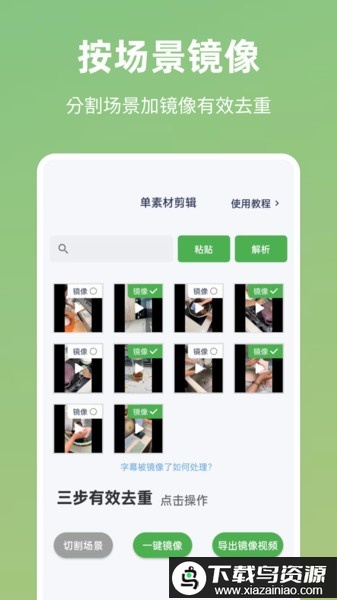这款应用专为快速生成带货视频而设计,它具备多素材混合剪辑功能,可以一键解析并下载无水印视频;通过智能分析视频内容,自动按场景进行分割处理,同时支持对视频片段进行镜像操作,有效实现原创度提升。