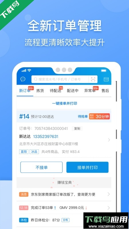 移动接单便捷省心:随时处理顾客订单,动态跟进配送进度,节省时间精力;