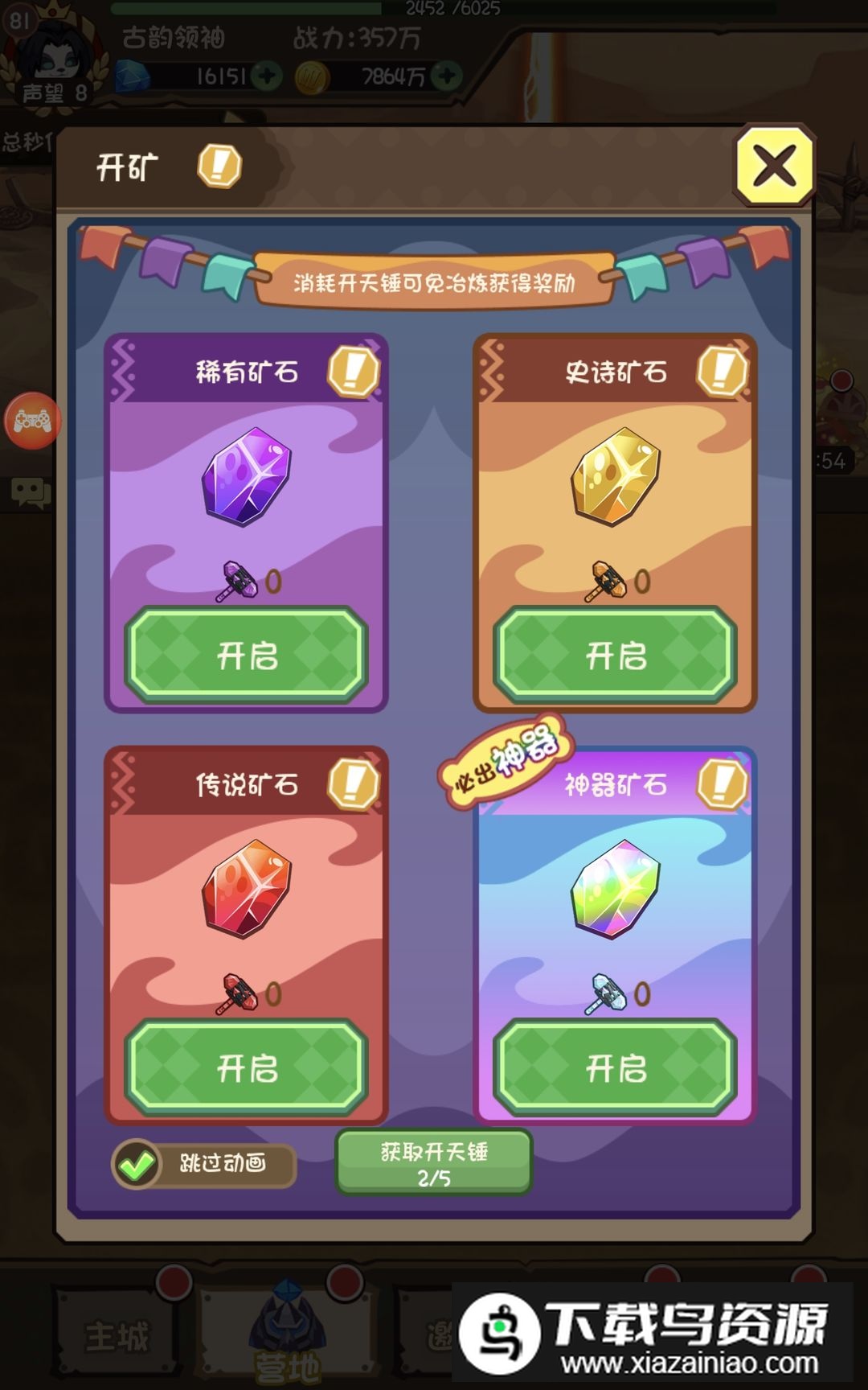 5. 矿洞开采务必每日进行,这是获取神器的重要途径;即便普通开采也有机会获得,全看个人运气。对于小氪玩家,限时24小时的神器礼包性价比一般,而包含熔岩石的328礼包相对更为划算。