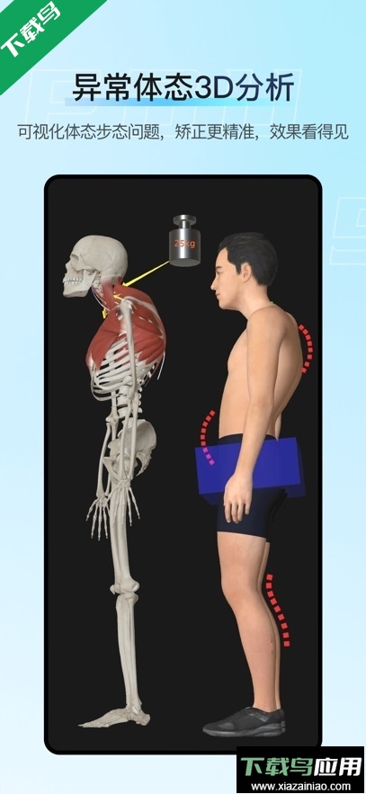 体态评估工具:上传照片可自动分析头前倾角、腰曲度、腿型等16项体态数据,支持建立客户档案与历史数据对比;适用于体态矫正、形体管理与康复效果跟踪;