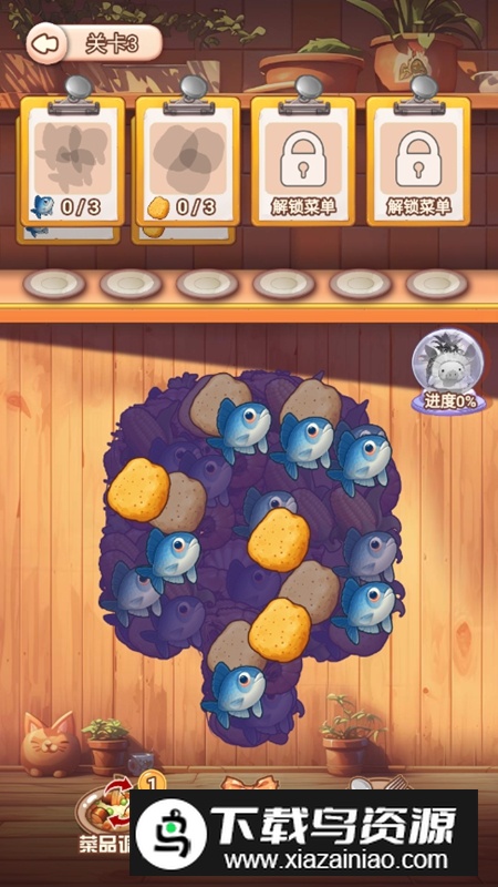 操作方式十分简单直观,只需点击屏幕上相邻的同类食材即可完成消除;游戏内准备了多种实用道具,在遇到难关时能提供有效帮助,增添了策略选择的乐趣;关卡数量丰富且设计各异,每一关都设定了不同的通关目标与挑战,难度循序渐进。