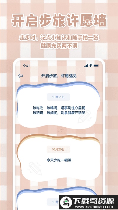 这是一款陪伴用户步行并记录日常的软件,设定目标后能实时查看完成进度,精准统计步数,辅助建立良好习惯;同时可以撰写许愿卡片,期待每日的小惊喜,在行走中学习知识,也能随时拍照留存生活瞬间。它让健康运动与实现心愿相结合,记录美好点滴,既实用又充满乐趣。