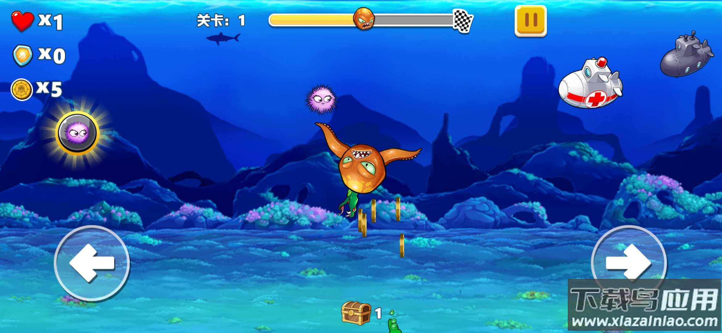 刚开始你仅是海洋里一只小章鱼,周围许多生物都可能伤害你,必须谨慎保护自己。