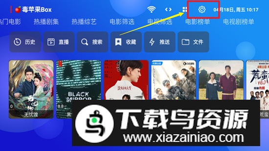 1.进入毒苹果BOX主页,点击右上角的齿轮图标。