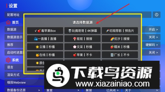 2.进入设置界面,更换为其他可用的配置源即可,该问题较少出现,因数据源会每日维护更新。