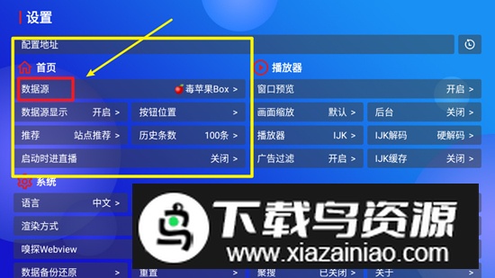 2.在设置页面中,找到首页模块下的数据源选项并点击。