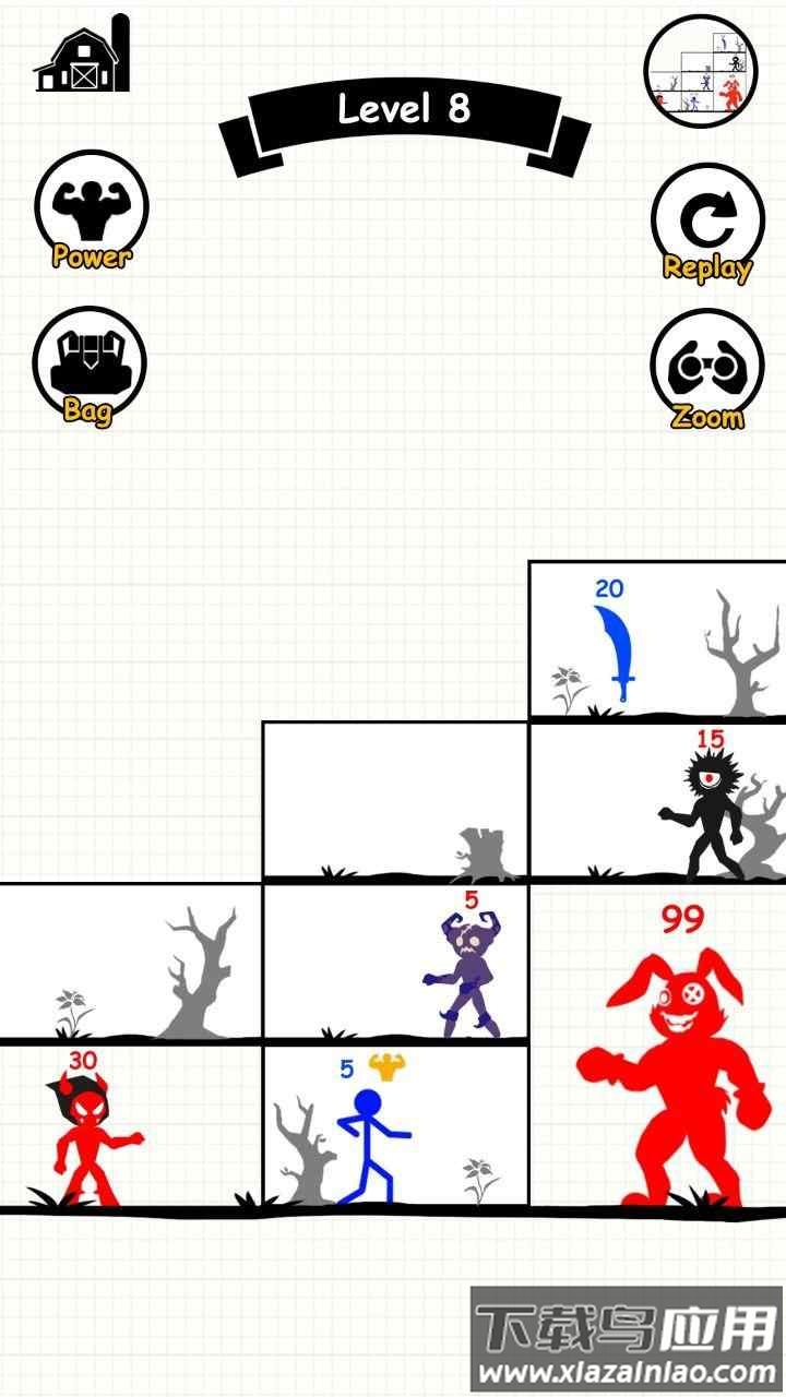 3、若你头顶显示的数字高于对手,就能成功向上攀登;同时你的数字也会随之增长,让你有能力击败数值更高的火柴人。