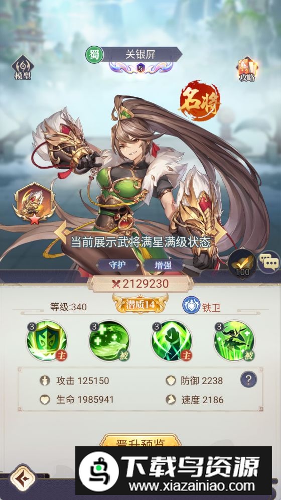 关银屏的被动技能见龙卸甲,在受到直接攻击时必定反击,并高概率造成神罚状态,可与赵云、黄忠联动提升队伍输出;其主动技能龙灵护佑能为队友承担大量伤害,增强队伍生存与持续作战能力。