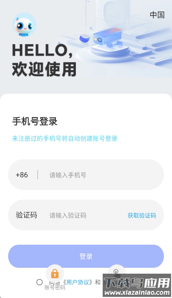 完成酷灵通app的下载安装后,点击打开进入登录页面,选择账号密码登录选项。