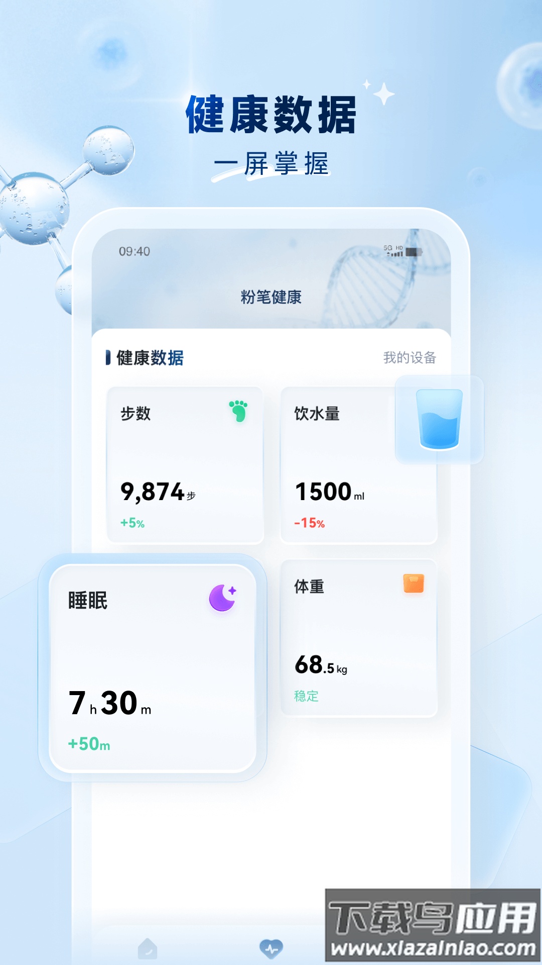 通过连接智能硬件,数据可以即时更新,让您清楚掌握身体状态,简单开启全新的健康管理方式。