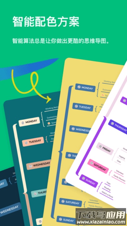 3、智能配色推荐:通过算法为你推荐协调的色彩搭配,让导图视觉效果更出色。