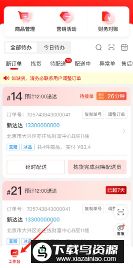 2、门店绑定成功后,即可在工作台开始处理并派送订单。