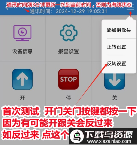 首次使用应用进行测试时,建议将开与关按键各操作一次,若发现开关方向与实际相反,请参照下图步骤进行调整纠正。