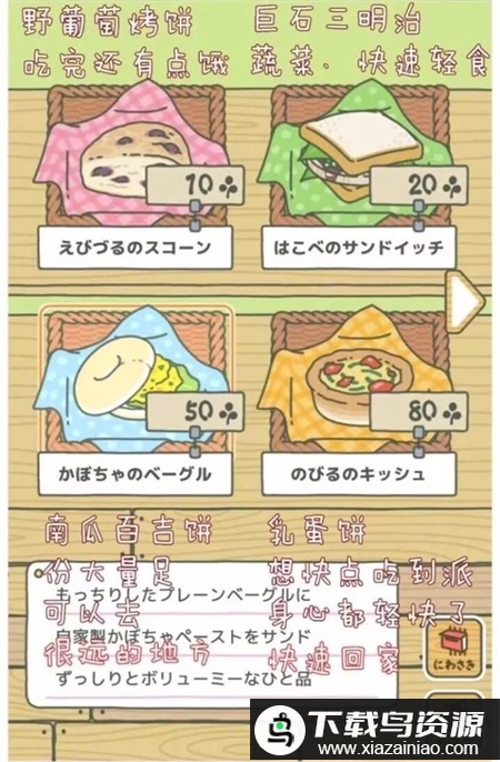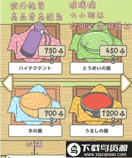 游戏界面右下角的商店可用三叶草购买各类物品,不同的食物会影响青蛙旅行的目的地与时长。